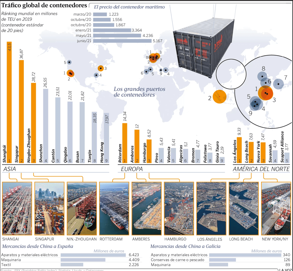 Barcelona, 3 de agosto del 2021.- Las consecuencias de la paralización de la economía mundial en 2020 por la pandemia Covid19 permanecen…un año después. Las cadenas de suministro, con escasez en materias primas como los chips, escasez de contenedores y el comercio internacional se resienten en diferentes variables. Por ejemplo, la publicación SHIPS ha publicado el siguiente diagnóstico que monitoriza la subida de los precios del transporte marítimo: