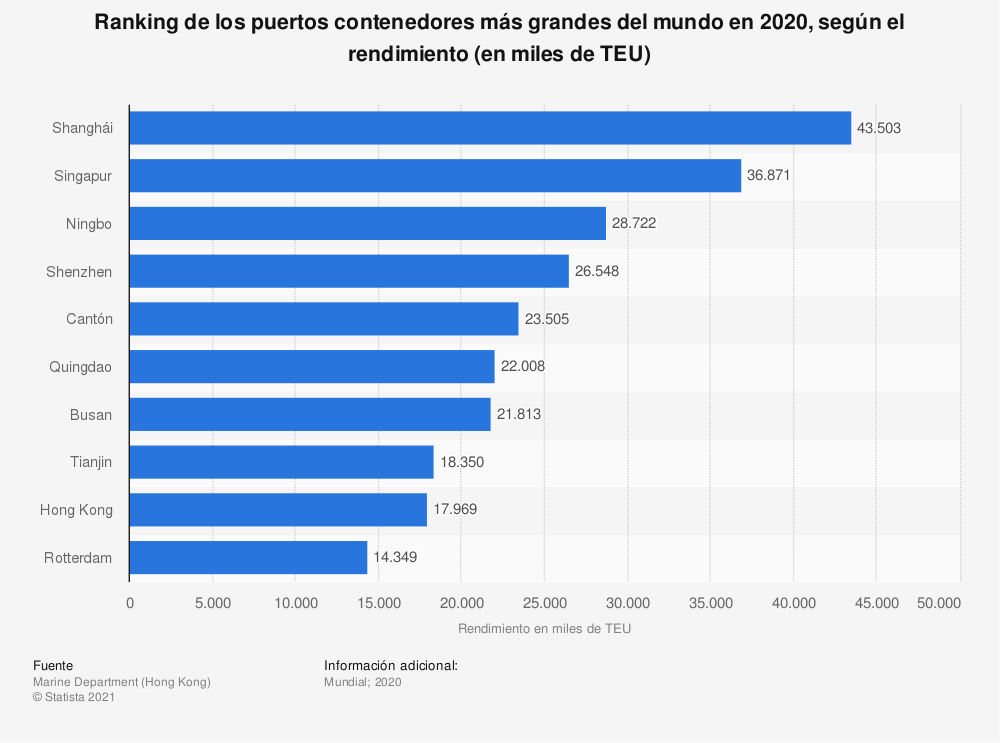 Rotterdam tuvo una tasa promedio de D&D en marzo de US$ 756, Singapur fue de US$ 615 y Amberes fue de US$ 709. Busan en Corea del Sur tuvo un cargo promedio de D&D de solo US$ 132 en marzo de 2021. El siguiente más barato después del puerto surcoreano fueron los puertos chinos de Dalian y Tianjin, ambos con promedios de US$ 201.