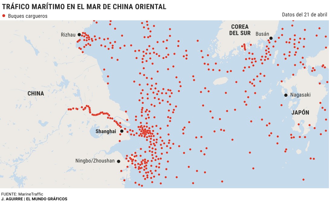 Volumen de tráfico. El puerto de Shanghái es el de mayor tráfico del mundo. El año pasado resgistró un volumen de más de 47 millones de contenedores. De ahí que cualquier distorsión en su funcionamiento impacte en el comercio y la producción de todas las economías mundiales. Los expertos consideran que en la actualidad está operando al 25% de su capacidad, como consecuencia de las duras restricciones impuestas por el Gobierno chino para frenar el enésimo brote de covid.