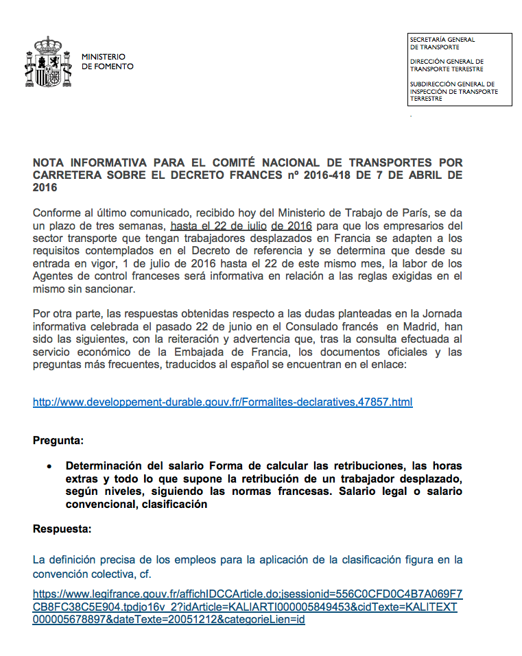 Barcelona, 8 de julio del 2016.- El transporte español está muy pendiente de la nueva reglamentación sobre Salario mínimo en Francia. Por esta razón, reproducimos a continuación la información publicada por la revista Todotransporte: