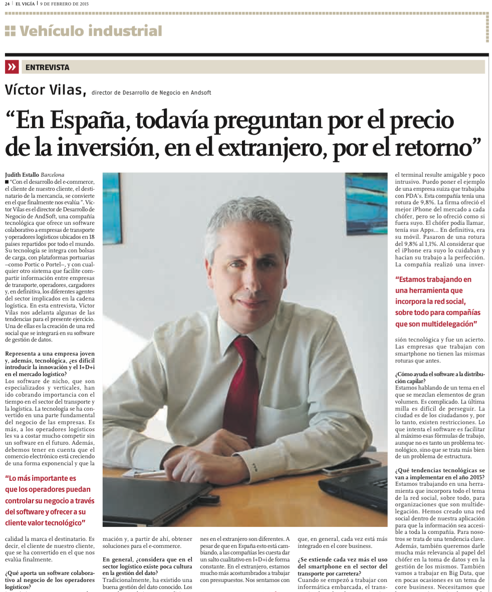 El Vigía, Semanario Logístico, entrevista a Víctor Vilas, Director Desarrollo de Negocio de AndSoft